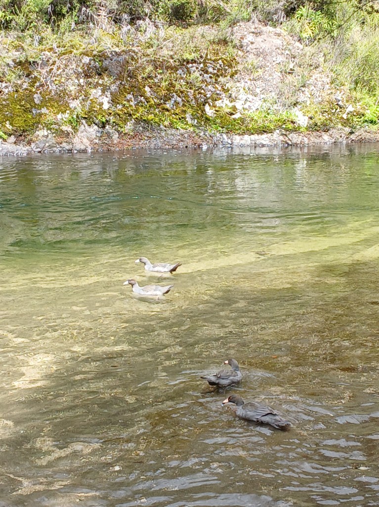 Finding a lunch spot was easy. Beautiful sandy beaches line the clear river. We make a coffee and a “real meals” dehydrated nacho. We watch an eel swim past us, the first of 4 sightings. We strip layers off as the day is at its hottest being 2pm and in no hurry to head back we decide to check out up river wading up through the calm waters. Much more time could have been spent here. What a neat place. Stunning is an understatement. We play with a hungry eel that jumps on to a bit of salami we hooked and released. Heading back, we take time to watch 2 pair of Whio(native blue duck) whom weren’t worried about us at all. River travel was cooling; water temps were delightful. We weren’t surprised to come across old campsites as we could have easily stayed here.