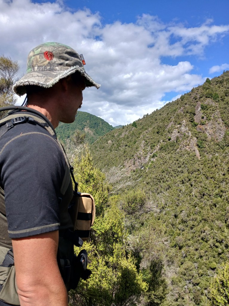 Spooked! There is heavy thump through the scrub and we have stumbled on our first encounter with a local sika. We stay quiet and push on, covering ground approximately 1km an hour. There is noticeable handy work that has been done around the place. A lot of tracks clearing and cutting of scrub which is really great to see such passion for the block. Coming to a sizeable patch, we place ourselves high up on a good view point. We have a muesli bar and enjoy the afternoon sun. Chris whispers with urgency. “Animal!”. We go still. A stag in velvet and a beautiful shiny red coat meanders out and not at all worried about being out in the open at 3pm. We eye him up. Block rules state clearly no stags in velvet to be shot. To be honest even if we were in public land we would have made the same decision not to shoot. Saving the animal for future hunters/hunting adventures. The stag looked to be growing a good stack of antlers and being day 1 of our 4-day trip we watched him with different intentions. It wasn’t to long before he came across our scent only 80 yards away. His body stiffened and he jumped at the unusual smell of human and before we knew it he was gone followed by squeals to alert all his mates. Well ..smiles on our faces. If this was the omen of the next few days, this trip was going to be an awesome one with plenty of wildlife encounters.